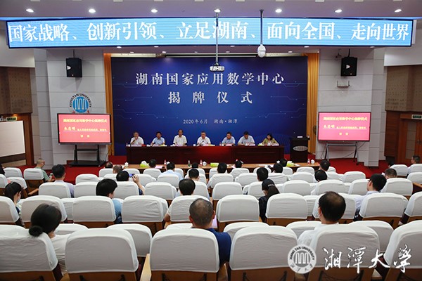 2020年6月28日,湖南国家应用数学中心在湘潭大学举行揭牌仪式,标志着湖南数学界首个国家级平台正式落户。副省长朱忠明出席讲话并为中心揭牌中心学术委员会成员张平文、袁亚湘、田刚、江松等院士发表视频讲话。