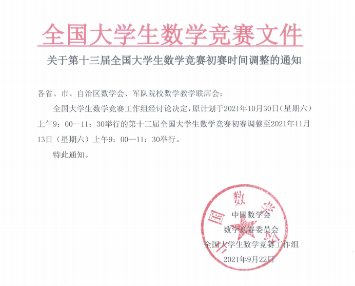 各有关高等学校: 为激励大学生学习数学的兴趣,强化数学思维,培养学生分析问题、解决问题的能力,提升我国高等学校人才培养质量,促进高等学校数学教育教学建设,并为青年学子搭建一个展示数学思维能力和学习成果...